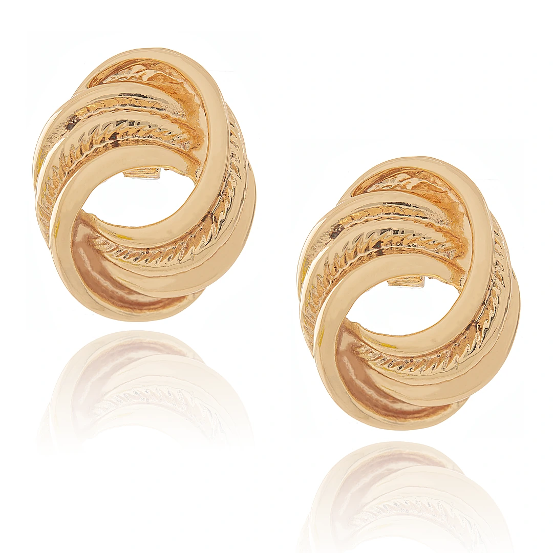 Brinco moderno em formato de nó, com superfície lisa e com detalhes texturizados
