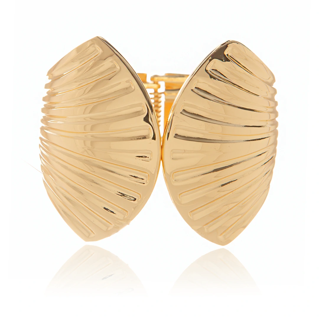Maxi bracelete dourado com formato de concha e superfície texturizada